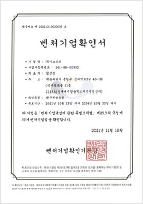 - 벤처인증 2019년 10월 22일