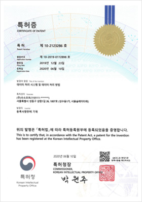 - 지적재산 특허등록: 데이터처리 시스템 및 데이터 처리방법(10-2123286)