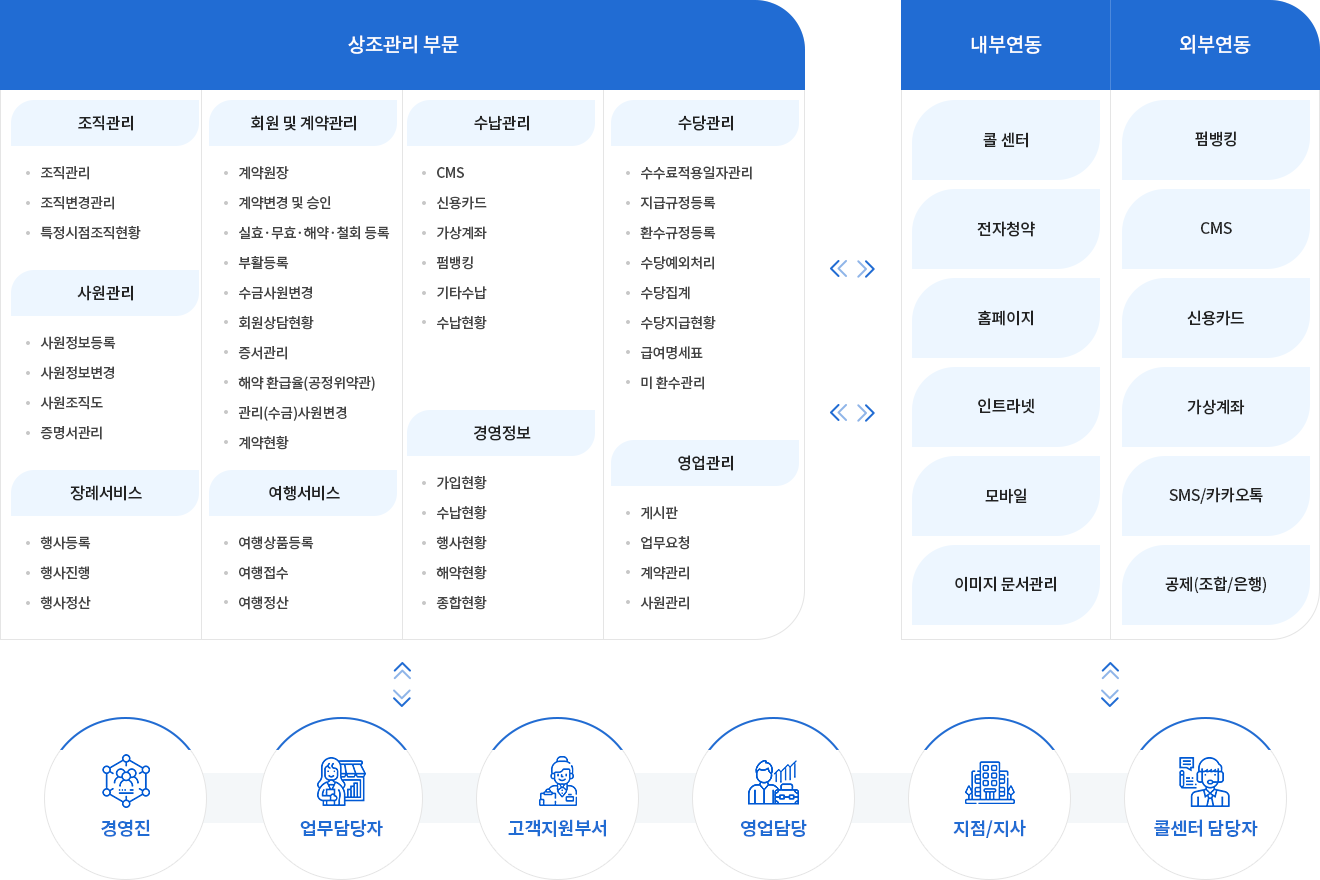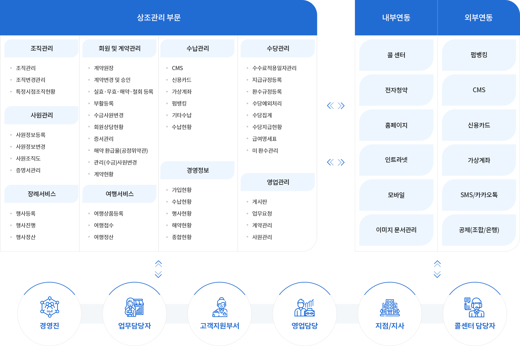 상조회사의 통합전산시스템 구축을 위해 낙후된 시스템을 개선하고 신규 서비스 추가에 따른 다양한
